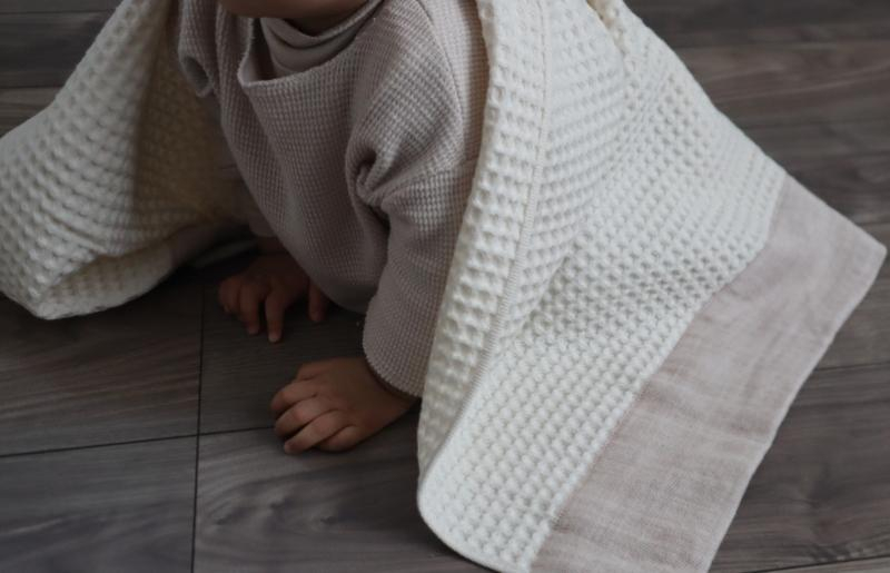 少し大き目のワッフルはふんわりとポコポコした風合いで、吸水性に優れ乾きが早いので日常使いに最適です。