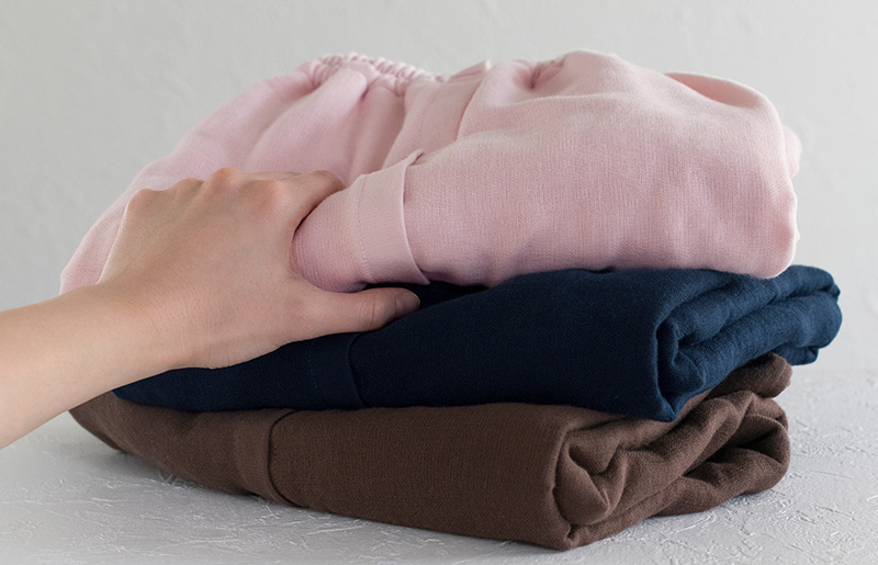 表面は通気性に優れたさらっとやわらかなガーゼ地で、裏面は吸水性の高いパイル地です。
