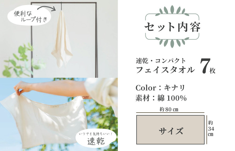 チョイスPayポイントと交換できる品 速乾・コンパクト・肌に優しいガーゼ&パイルのループ付フェイスタオル7枚セット キナリ【泉州タオル 国産 吸水 普段使い シンプル 日用品】