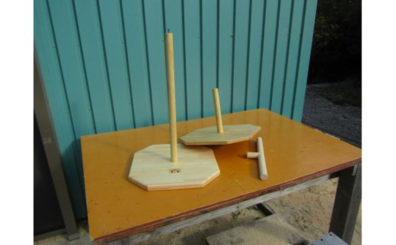 鳥が止まる部分の丸棒の直径が32mm。そして、一番上の部分から約70mmの部分で分割できます。また最上部品は、鳥の為に「無塗装」にしています。中央の糞受けまでが、止まり木部分から、約300mm空いています。