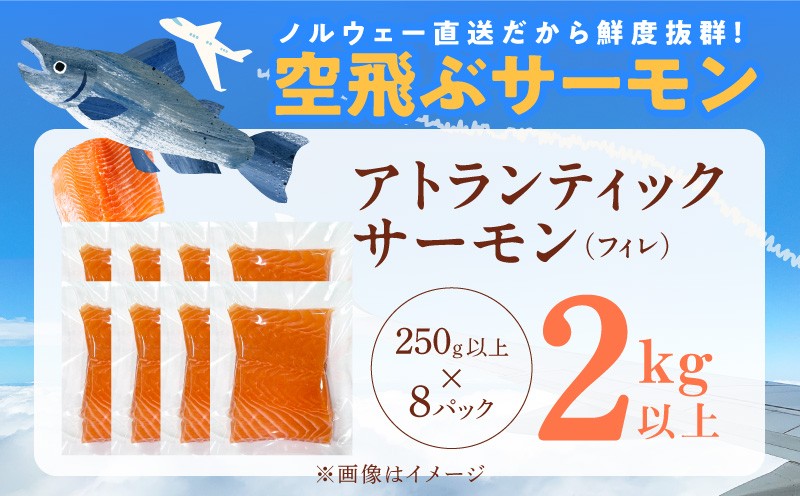 | 容量 | ・アトランティックサーモン 総量2kg以上 ※「250g×8パック」でお届けします。 形状:フィレ ※画像はイメージです。 |