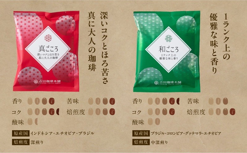 製造直売だから楽しめる、袋を開けた時の素晴らしい香り。「おいしい笑顔を何杯でも!」との思いから生まれたコーヒーです。おいしさと高コストパフォーマンスを求めた、当店自慢のドリップコーヒーです。 <泉南市との共通返礼品> 吉田珈琲本舗は泉南市に工場がありますが、泉佐野市は創業者の生家があり、深い繋がりがあります。 コーヒー豆(ブラジル・エチオピア・ベトナム・インドネシア)、焙煎:泉南市