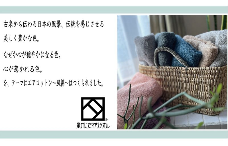 エアコットン風綿(ふわた)は、ふっくらとした風合い、そして驚きの軽さとスポンジのような吸水性を実現。