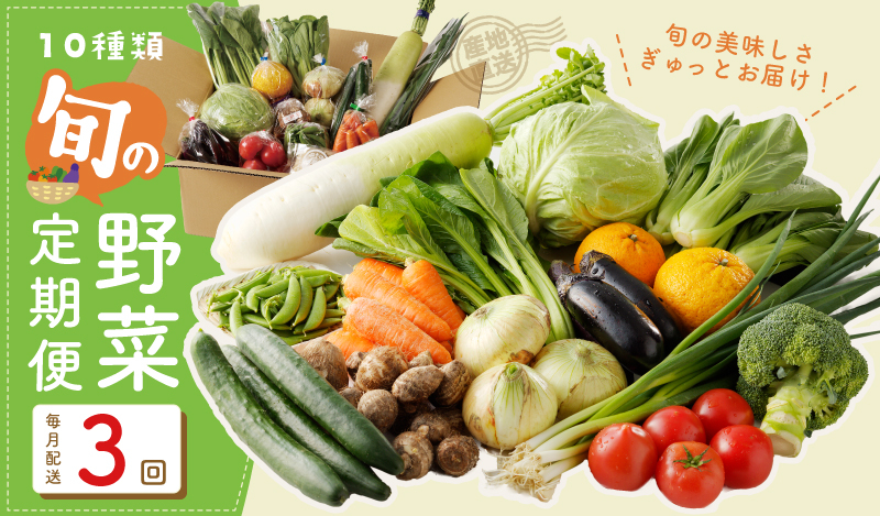 チョイスPayポイントと交換できる品 10種類の新鮮野菜 定期便 全3回 詰め合わせ 国産 冷蔵発送 毎月配送コース【国産 野菜 やさい 詰め合わせ セット 年間 1年 12か月 新鮮 旬 冷蔵発送 ええもん ていきびん】
