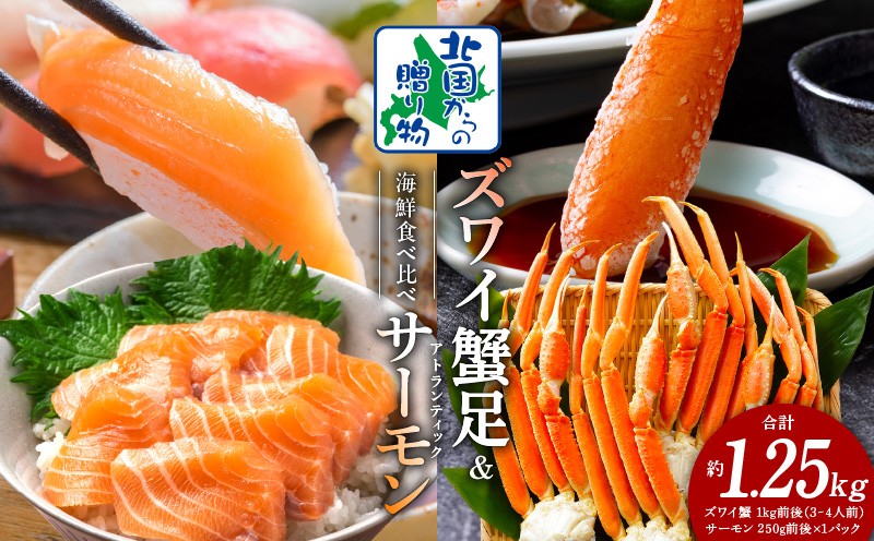 チョイスPayポイントと交換できる品 ズワイガニ足 1kg 3-4Lサイズ 蟹酢付 昆布塩加工 & アトランティックサーモン 250g【北国からの贈り物 海鮮 食べ比べ セット 海鮮丼 お楽しみ 冷凍】