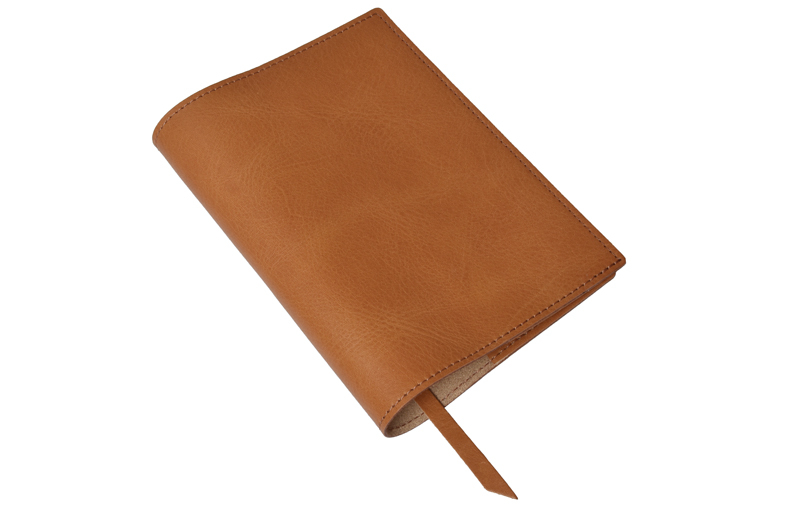 使用するパーツごとに革の厚さを変える「漉き加工」を行い、ブックカバーを付けた直後でも、本の形にしっかり沿う厚みに仕上げました。