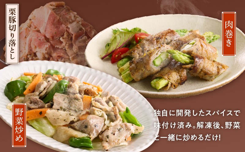 チョイスPayポイントと交換できる品 栗豚 3種セット 合計 900g(ステーキ/切り落とし/生姜焼き用)【オリジナルスパイス仕込み 豚肉 小分け 盛り合わせ 食べ比べ 焼くだけ】