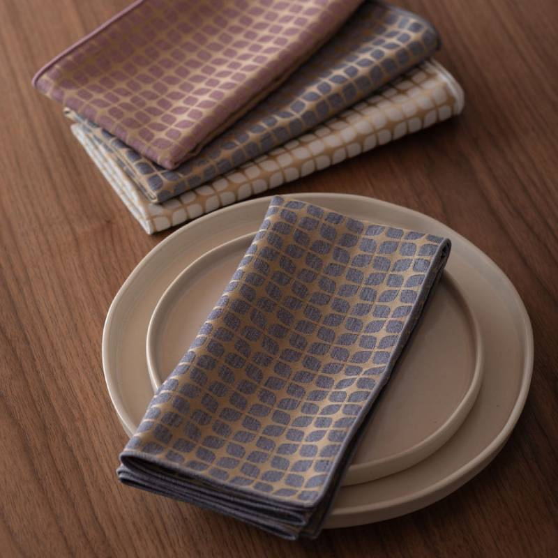 センスがいいと喜ばれる、ギフトに最適なナプキンセット。柄と縁色が目をひくメロー仕立てのナプキンはちょっとした御礼に送りやすい一品。