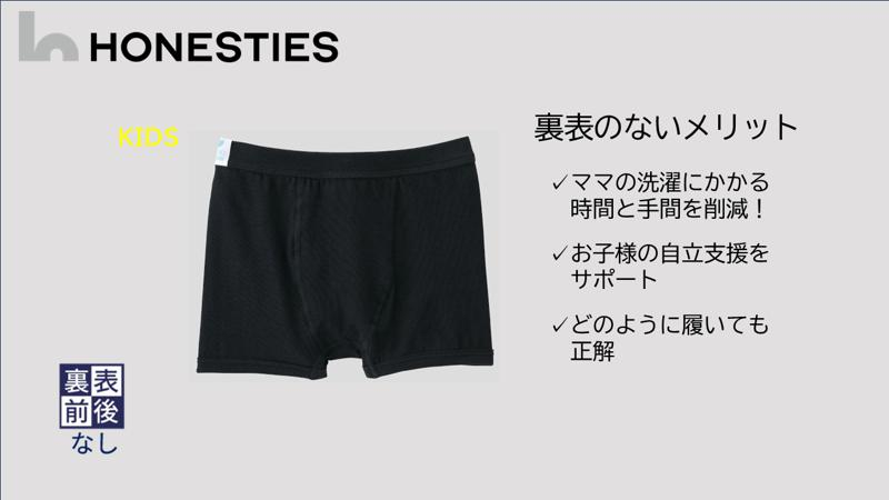 [KIDS] 裏表も前後もなくしたキッズ用スマートボクサーパンツ。裏返しのままはいても、前後どちらをはいても、きちんと正しく着られます。