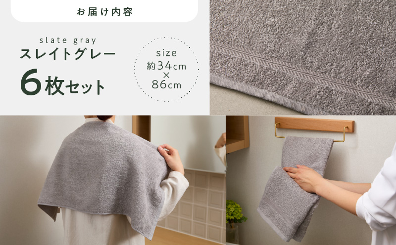 | 容量 | コーマカラーフェイスタオル6枚セット(スレイトグレー) サイズ:約34×86cm、240匁・重さ:約75g/枚 ※画像はイメージです。 ※ご覧の端末のモニター設定によっては実物の色味と異なって見える場合がございます。 |