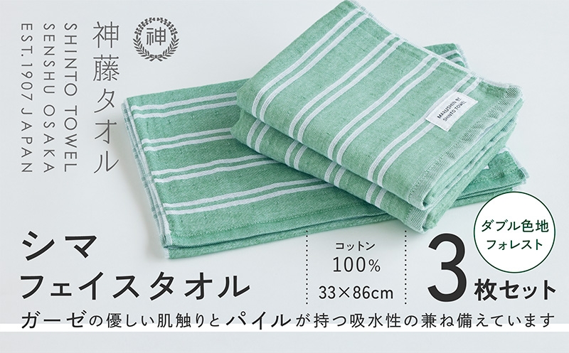 チョイスPayポイントと交換できる品 神藤タオル「シマ・フェイスタオル」(ダブル色地/フォレスト)3枚セット