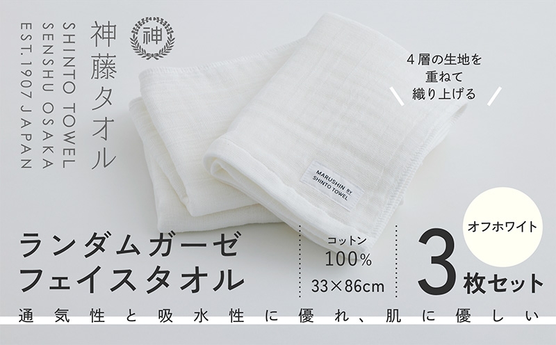 チョイスPayポイントと交換できる品 神藤タオル「ランダムガーゼ・フェイスタオル」(オフホワイト)3枚セット