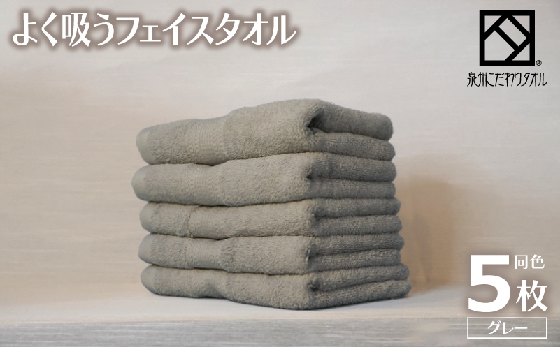 チョイスPayポイントと交換できる品 【圧倒的企業努力】よく吸うフェイスタオル 5枚セット(グレー) 泉州こだわりタオル