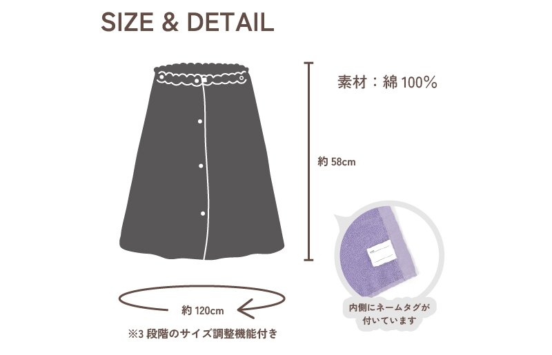 | 容量 | ラップタオル 1着 カラー:チャコール サイズ:フリーサイズ 着丈:58cm すそまわり:約120cm 重さ :約208g ※画像はイメージです。 |