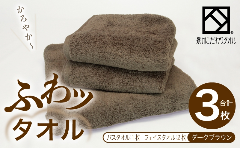 チョイスPayポイントと交換できる品 ふわッタオル バスタオル 1枚&フェイスタオル 2枚セット(ダークブラウン)【スーパーゼロ SUPER ZERO 泉州こだわりタオル 泉州タオル 国産 吸水 普段使い シンプル 日用品 家族 ファミリー】