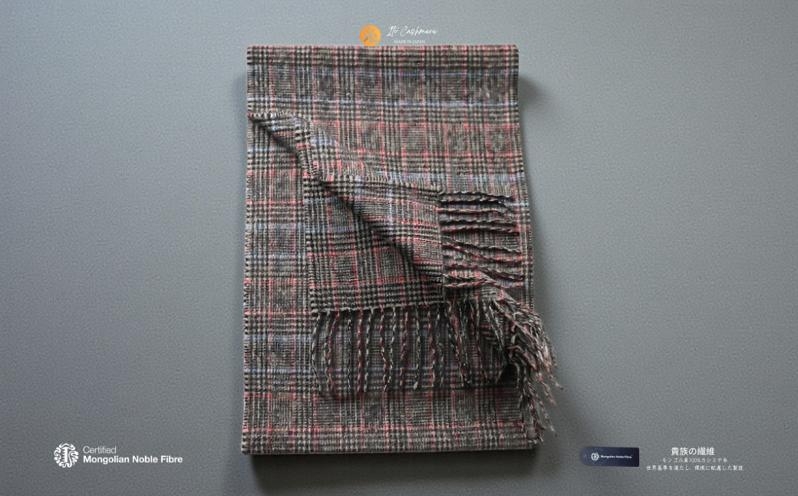 チョイスPayポイントと交換できる品 『Noble Fibre』100%カシミヤ・マフラー グレーン&チェック フリンジ付き【高級 カシミア おしゃれ ファッション 防寒 かしみあ】