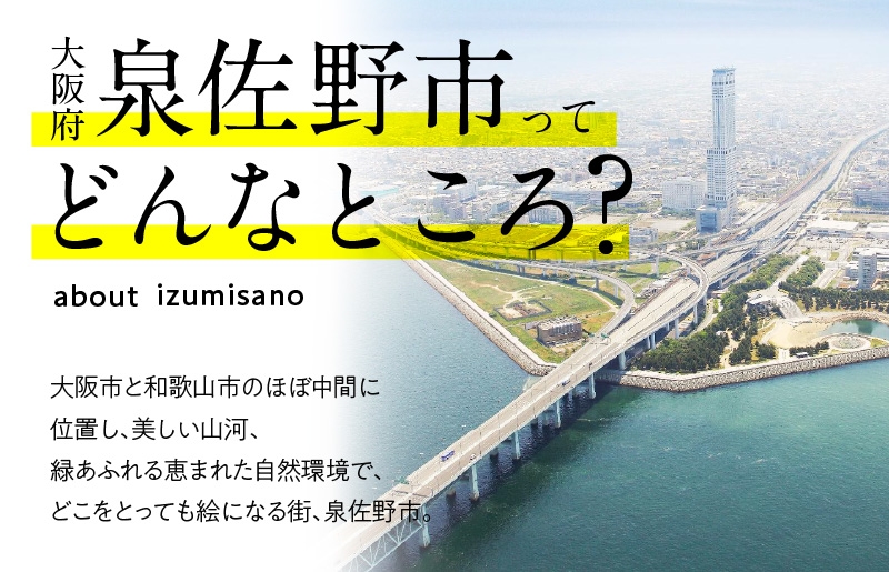 大阪市と和歌山市のほぼ中間に位置し、背後に一部が金剛生駒紀泉国定公園に指定された和泉山脈を擁し、美しい山河、緑あふれる恵まれた自然環境にあるまちです。商・工・農・漁業がそれぞれバランスよく栄えてきましたが、関西国際空港の開港などに伴う人口の増加とともに、商業・サービス業が盛んになっています。
