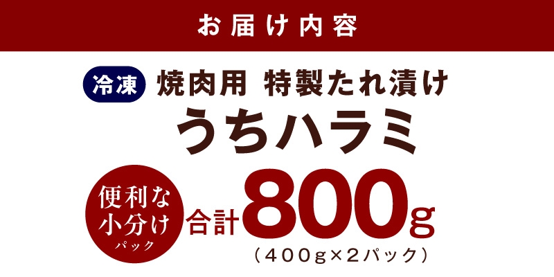 | 容量 | 味付け 希少部位 牛うちハラミ800g(400g×2) ※画像はイメージです。 |