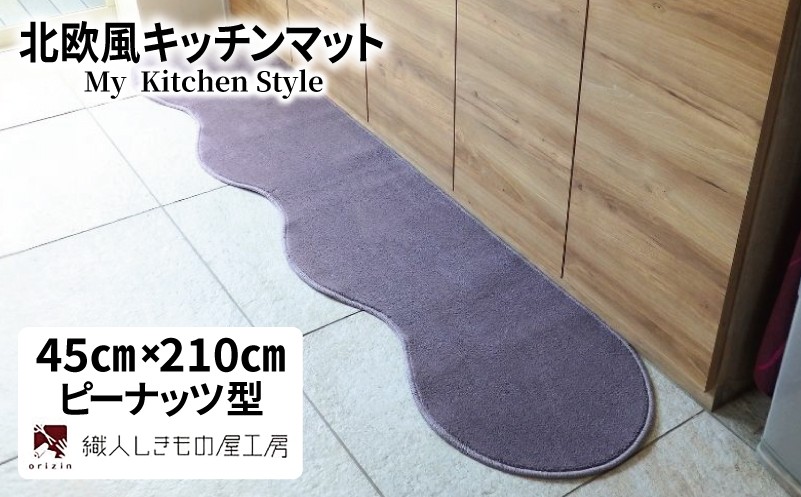チョイスPayポイントと交換できる品 北欧風キッチンマット ラグマットタイプ 45×210cm ピーナッツ型 モーブ 抗菌防臭 SEK 織人しきもの屋工房