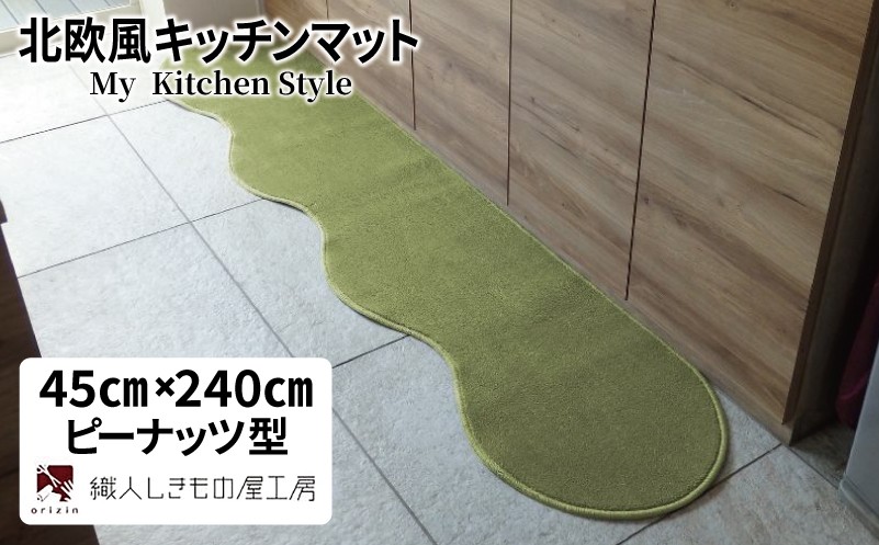 チョイスPayポイントと交換できる品 北欧風キッチンマット ラグマットタイプ 45×240cm ピーナッツ型 ピスタチオ 抗菌防臭 SEK 織人しきもの屋工房