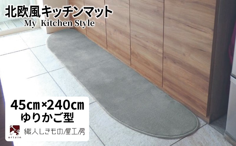 チョイスPayポイントと交換できる品 北欧風キッチンマット ラグマットタイプ 45×240cm ゆりかご型 シルバーグレー 抗菌防臭 SEK 織人しきもの屋工房