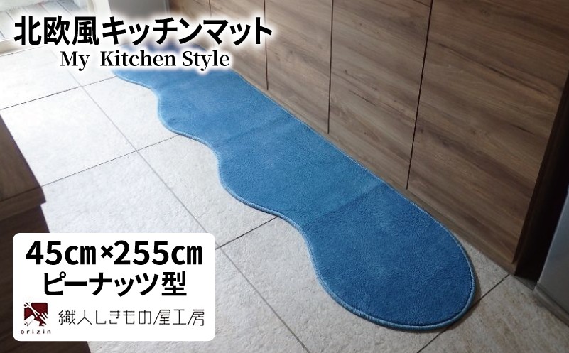 チョイスPayポイントと交換できる品 北欧風キッチンマット ラグマットタイプ 45×255cm ピーナッツ型 ブルームーン 抗菌防臭 SEK 織人しきもの屋工房