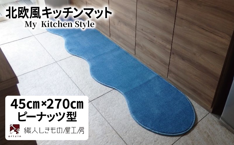チョイスPayポイントと交換できる品 北欧風キッチンマット ラグマットタイプ 45×270cm ピーナッツ型 ブルームーン 抗菌防臭 SEK 織人しきもの屋工房