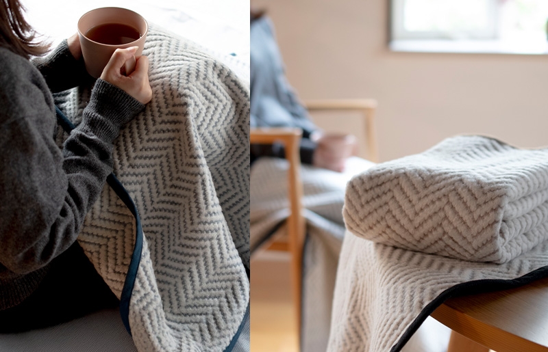 シルクと綿、2種類の糸で織られた日本製ブランケット。