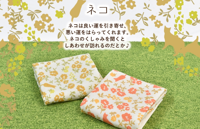 チョイスPayポイントと交換できる品 しあわせを運ぶガーゼハンドタオル(個包装)8枚 ネコ/イエロー【タオル 泉州タオル 吸水 速乾 普段使い 無地 シンプル 日用品 家族 たおる】