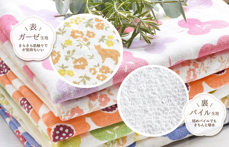 それぞれのデザインにしあわせのメッセージが込められたしあわせを運ぶガーゼハンドタオルに、