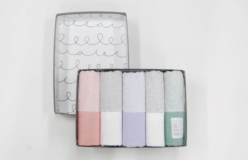 チョイスPayポイントと交換できる品 【お中元】銀の糸と雪音加工 フェイスタオル 5枚 A4サイズの収納箱入り