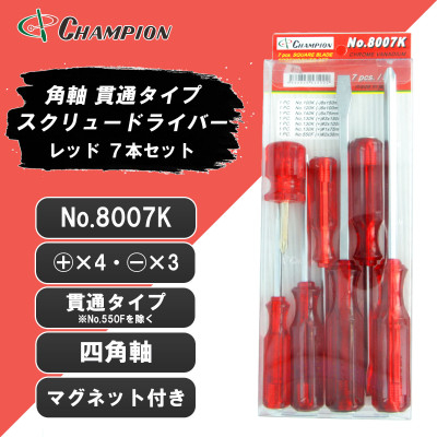 チャンピオンツールの角軸貫通ドライバー レッド 7本セット 工具 NO.8007K【1320794】