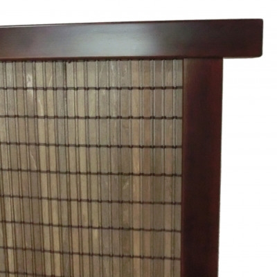 中部はシナ材を使用しオイルステイン、ダークブラウンに着色後スダレ状に編んだ木簾です。
