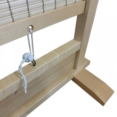 中部の木簾は上下のフックにかけてストッパーで止めています。