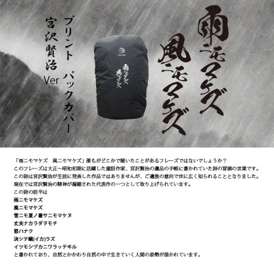 宮沢賢治の詩 【雨ニモマケズ】のロゴプリント入りのパックカバーです。