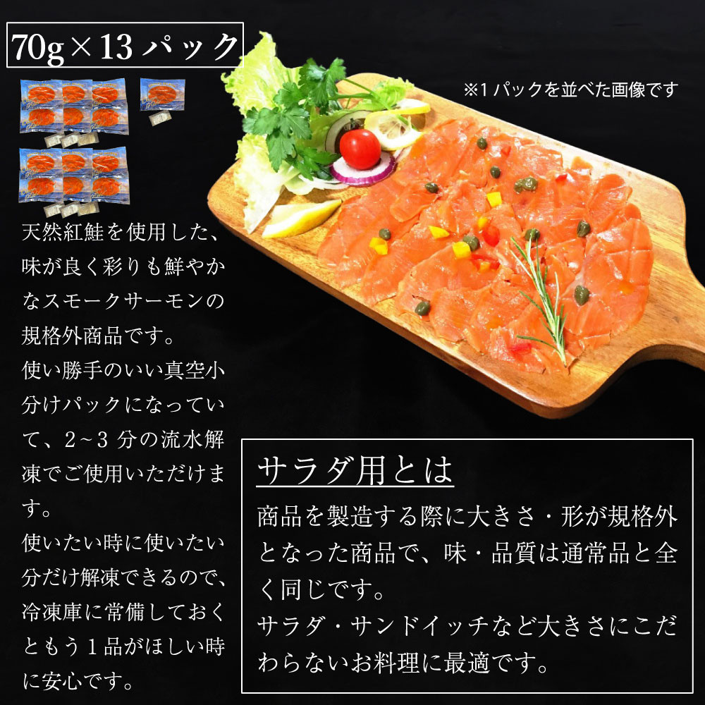 無添加スモークサーモンサラダ用 おつまみ しっとり冷燻製 70g×13pc [0283] スモークサーモン 小分け パック くんせい 大阪府寝屋川市 送料無料 [0283]