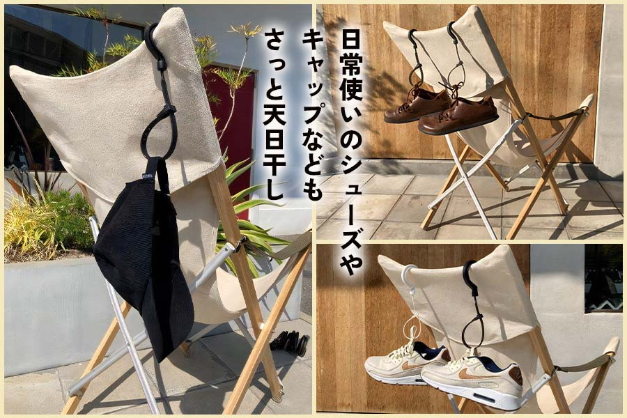 フックは360度回転しますので、何でも束ねて吊るせます。