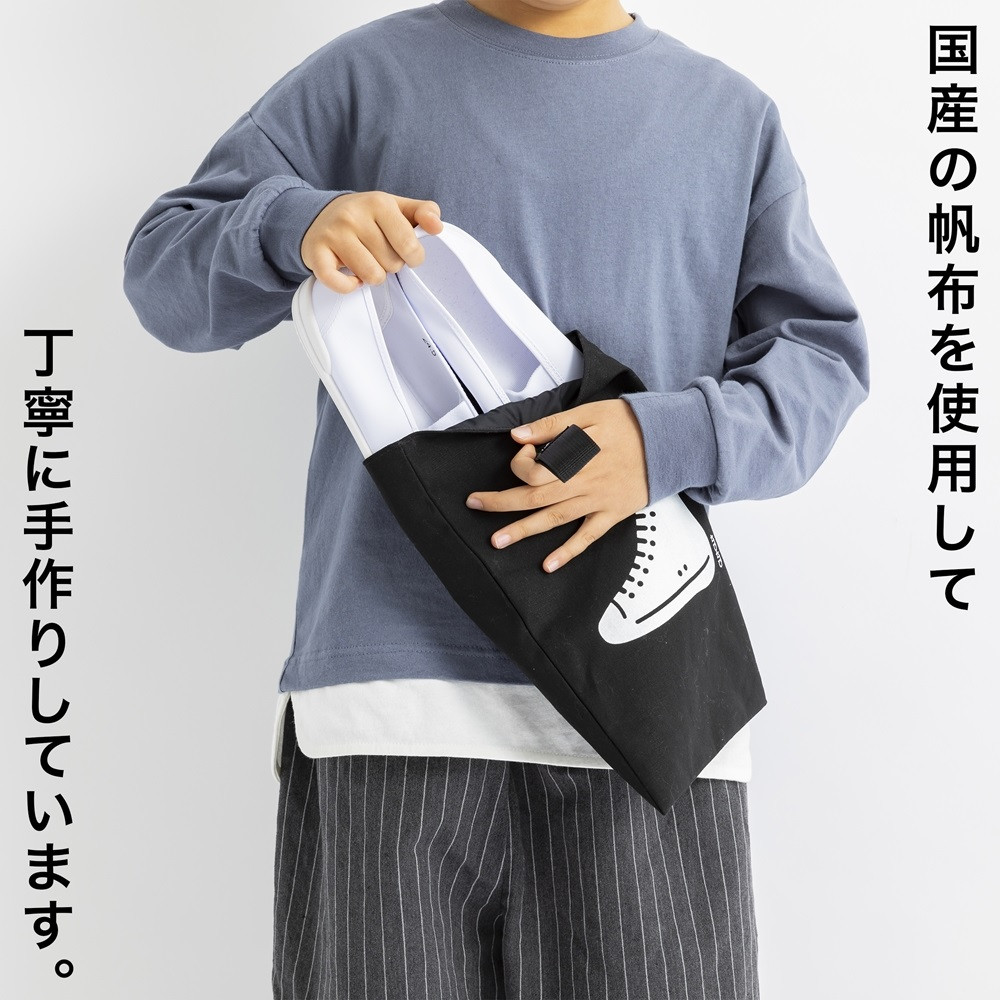 親子で普段使いもできる、シンプルだけどオシャレで丈夫な靴袋です。