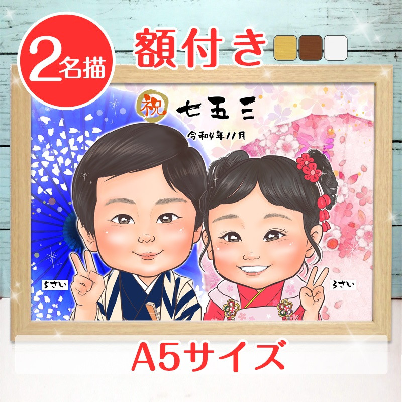 [額付き] 似顔絵 2名分 [人気似顔絵師「ももっぴ」] Sサイズ(A5)サイズ|プレゼント 誕生日 記念日 ギフト [0596]