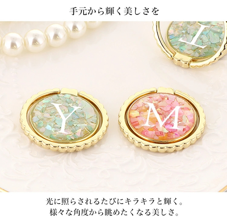 上品な輝きに魅せられるスマホリングです。 大人可愛い名入り スマホリング (ring-06)【お好きなイニシャルを記載ください】[1042-1046]