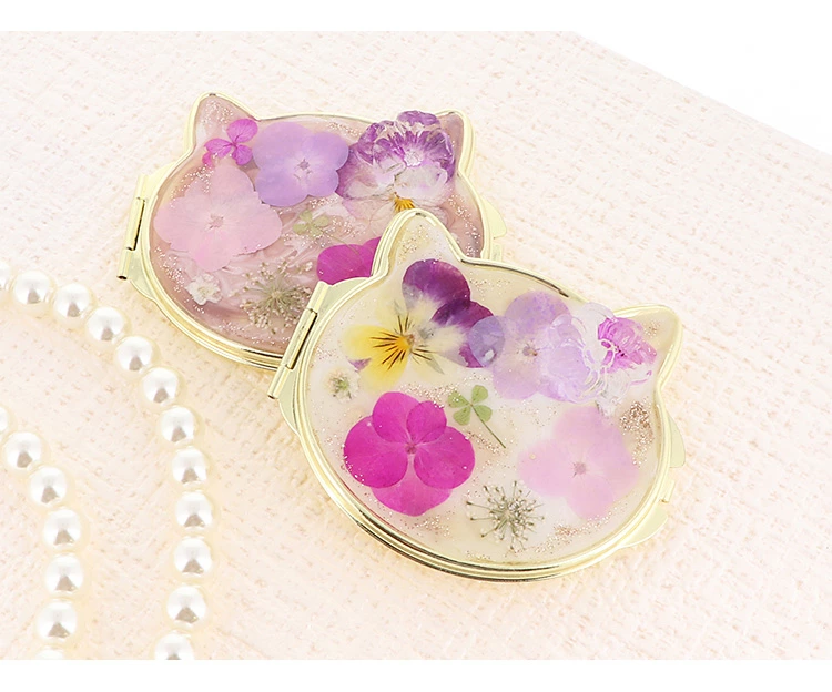 カラフルな押し花が美しい猫ちゃん型コンパクトミラー。