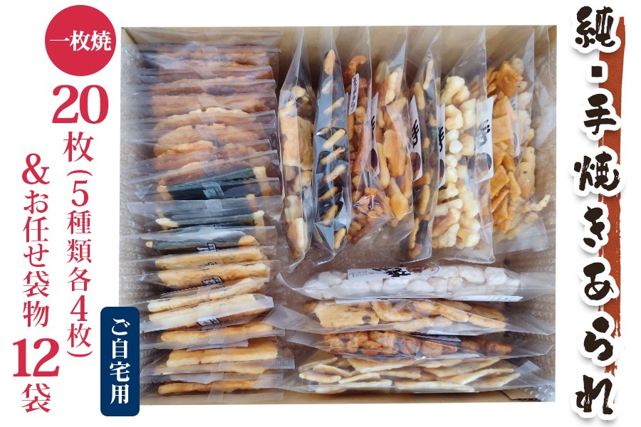 純手焼きあられ・おかき お任せ袋物 12袋+一枚焼20枚 (5種類×…