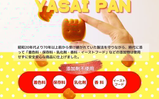・パン生地に、フリーズドライ製法で香り、栄養を閉じこめた「北海道のかぼちゃパウダー」と「長崎県北海道産のにんじんパウダー」を生野菜換算で40%以上になるように練り込んだ、野菜のおいしさと成分がたっぷりなおやつタイプのやさいパンです。