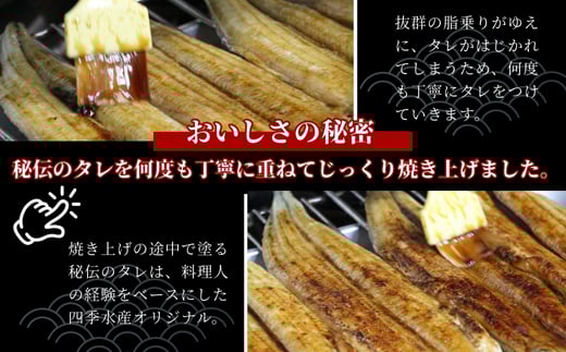焼き上げの途中で塗る秘伝のタレは、料理人の経験をベースにした四季水産オリジナル。