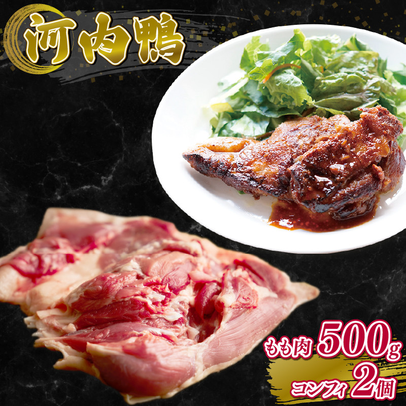 河内鴨 コンフィ 2個 約800g もも肉 500g セット 鴨 かも カモ 鴨肉 かも肉 カモ肉 肉 鴨もも やすき焼き 鴨南蛮 鴨南 かも南蛮 冷凍 朝引き 新鮮 自宅で お鍋 鍋 美味しい おいしい 大阪府 松原市