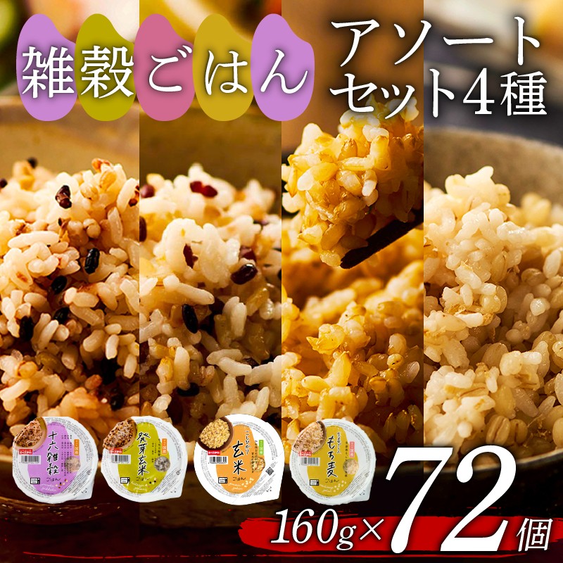 雑穀ごはん アソート セット 4種 。レンジ で 簡単 調理 雑穀ごはん アソートセット 4種 160g 72個 十六雑穀 発芽玄米 玄米 もち麦 パックごはん パックご飯 ごはんパック ご飯パック パックライス パック 16雑穀 雑穀 米 ごはん ご飯 こめ ライス 備蓄 保存 防災 レンジ 温めるだけ レンチン 簡単 調理 健康 栄養 ダイエット 美容 レトルト インスタント 国産 セット 人気 おいしい 72 72食 おくさま印 大阪 松原