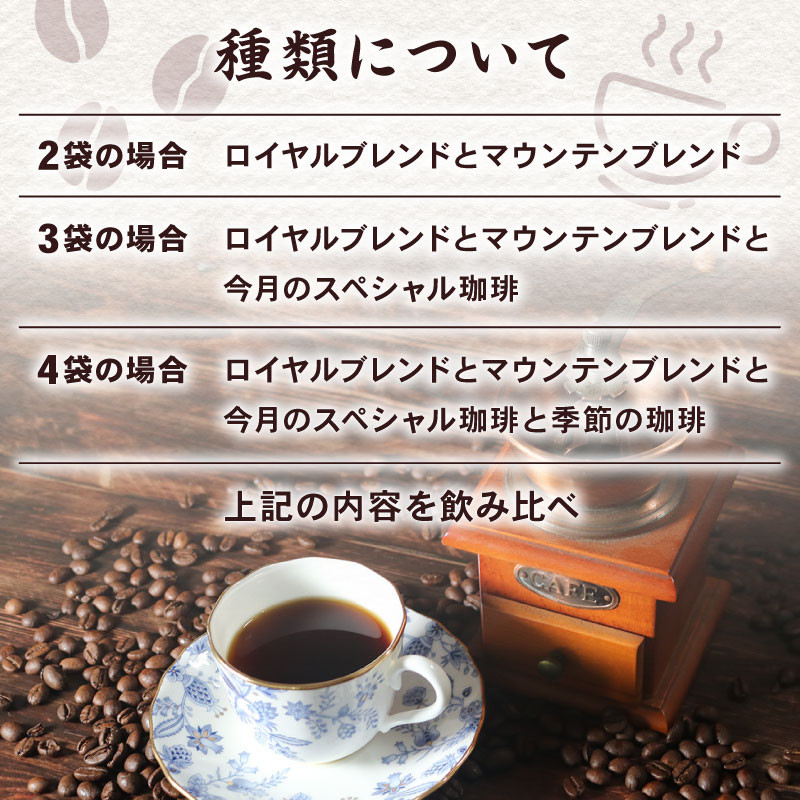 煎りたて 香り豊かな 自家焙煎珈琲 ご自宅用 プレゼント にいかがでしょうか 定期便 3ヶ月 選べる 種類 容量 コーヒー 粉 豆 計300g-800g ロイヤル ブレンド マウンテン ブレンド 今月の スペシャルティ 珈琲 季節の珈琲 詰め合わせ セット コーヒー豆 コーヒー粉 ドリップ レギュラー 自家 焙煎 煎りたて 挽きたて サン珈琲 大阪府 松原市