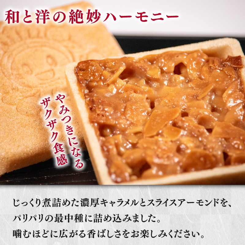 ひと口ごとに、ナッツの食感とキャラメルの甘み、最中の軽やかな香りが調和する、こだわりのお菓子でございます。