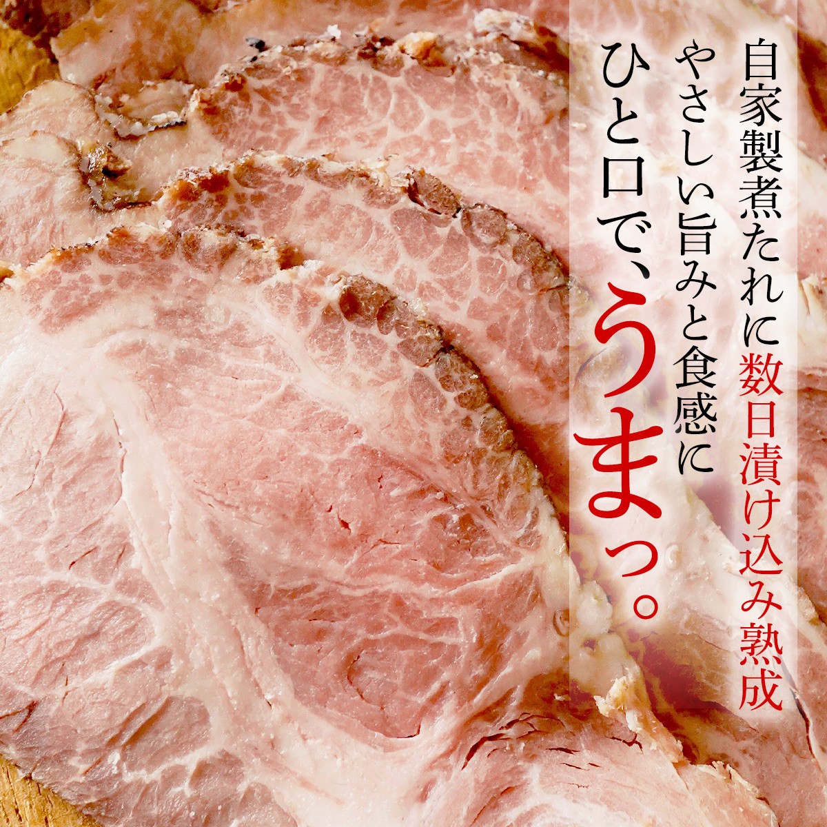 製造から仕上げまで自社で一貫管理。温度と時間にこだわり調整し、中はピンク色でしっとりとした柔らかい食感の肉質を実現。