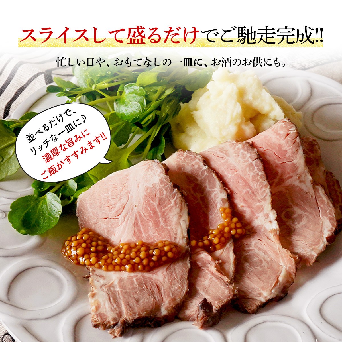 200gの真空パックで、無駄な包装は省いた便利仕様。お好きな厚みにスライスしてお召し上がりください。